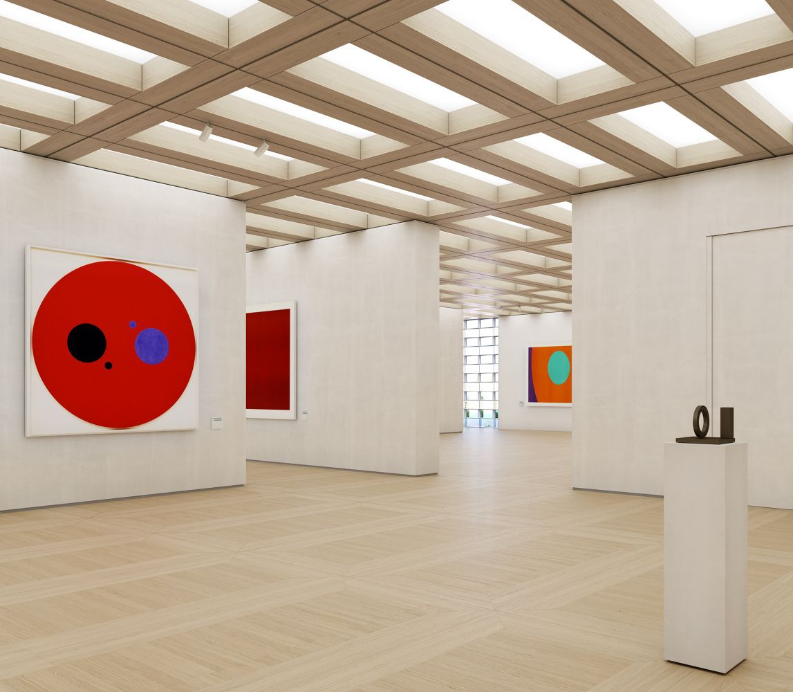 The public activities of the museum — the cafe and the event space — activate the ground level. They benefit from the views on the ever-changing colors of the park throughout the seasons. This area can be isolated easily and function independently outside the museum's visiting hours.