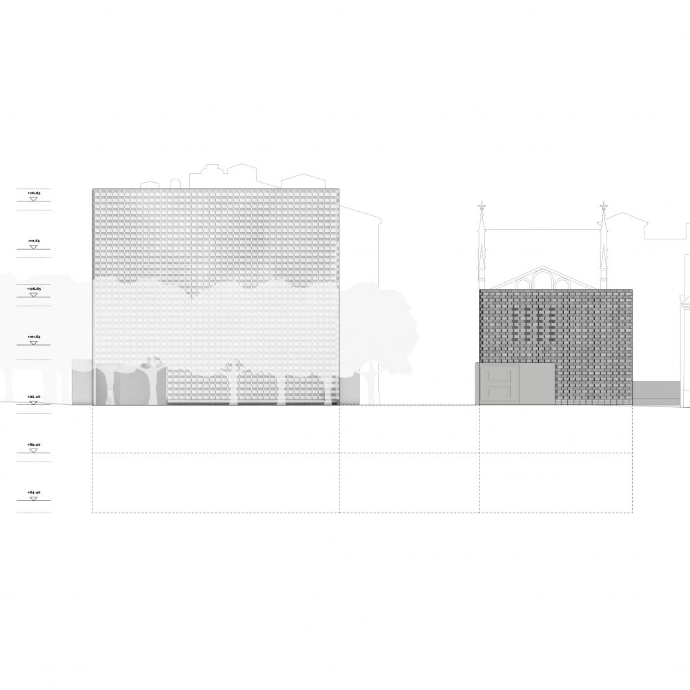 The museum's entrances conveniently intercept the flows of people coming from the square and the lateral street.