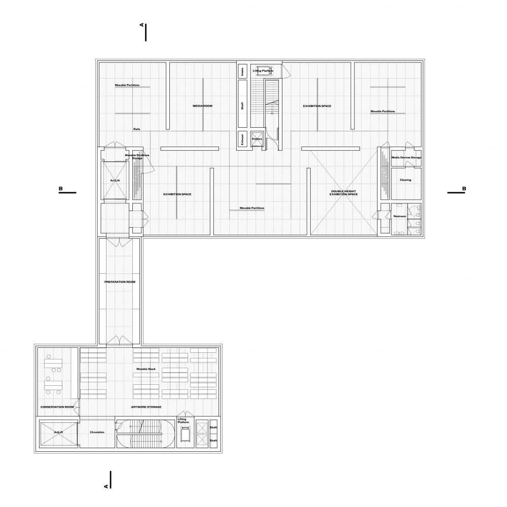 The Sara Hilden Foundation has the ambition to program and host several exhibitions simultaneously. Thus, the museum is conceived as an efficient 'display machine'. The separation between public and service circulation guarantees the seamless movement of art and material. As a result, each floor can be staged independently, maximizing the curatorial flexibility.