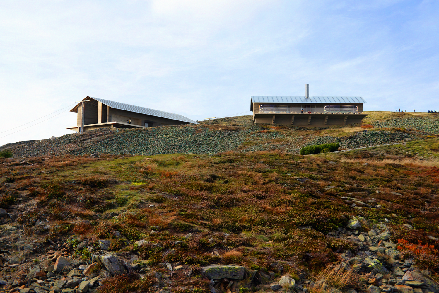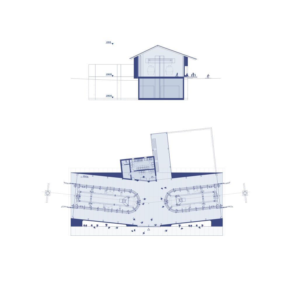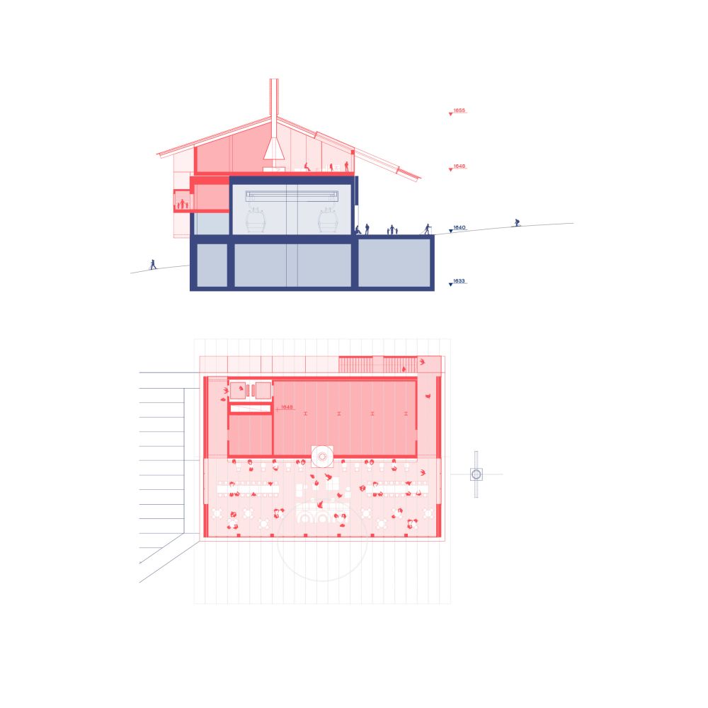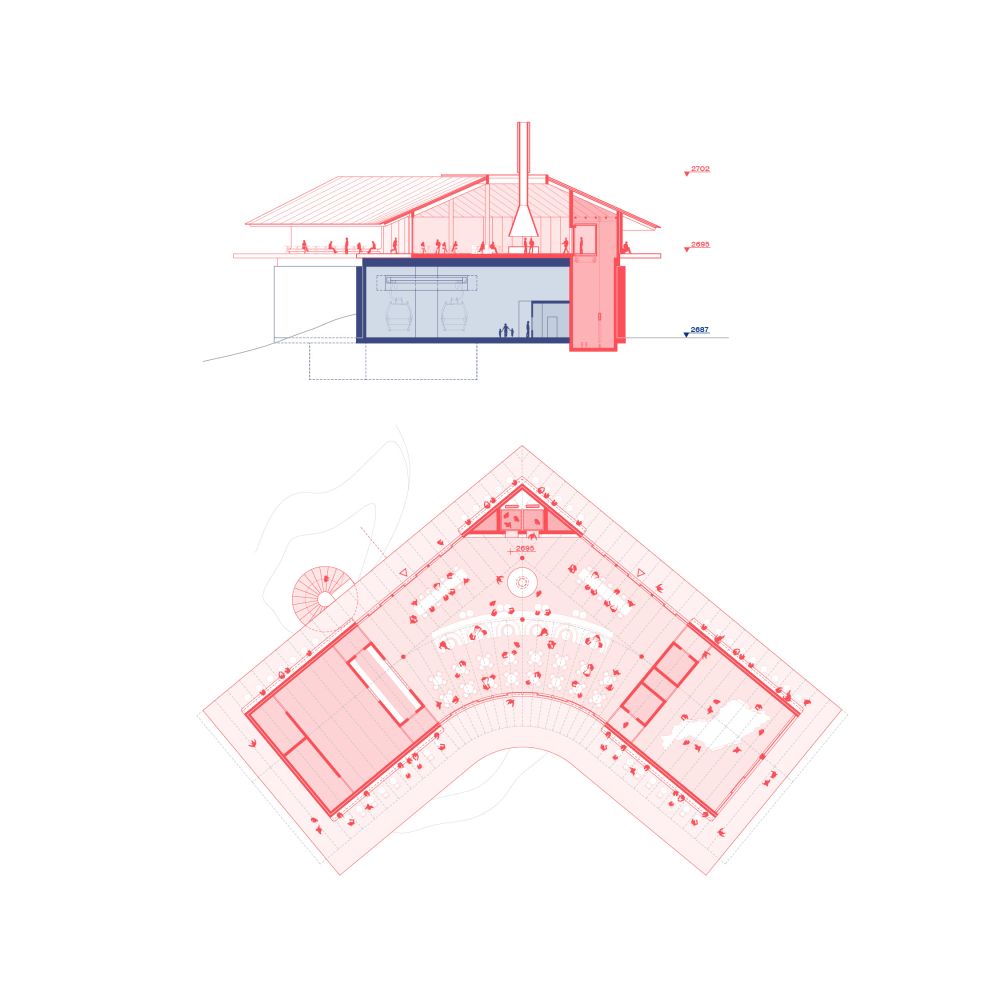 The identity for the new cableway aims to reconcile architecture and landscape, use and contemplation. From a place of transit, alien to its surrounding, this infrastructural typology becomes a place that builds relationships, inviting visitors to adapt to the slower pace of the mountain, beholding its magnificence and fragility.
